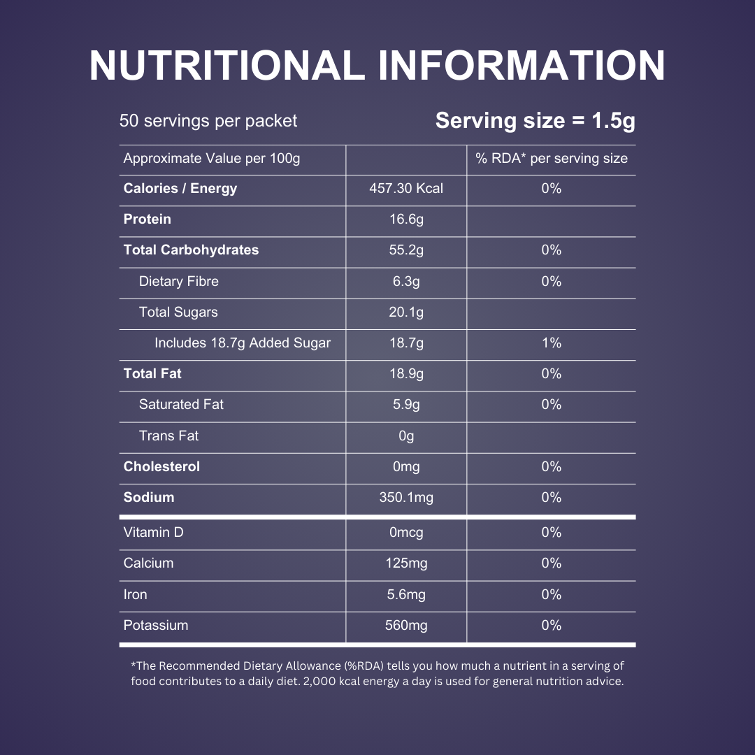 100% roasted and vegan friendly. Zero added Colors, Zero added preservatives, Zero added flavors.