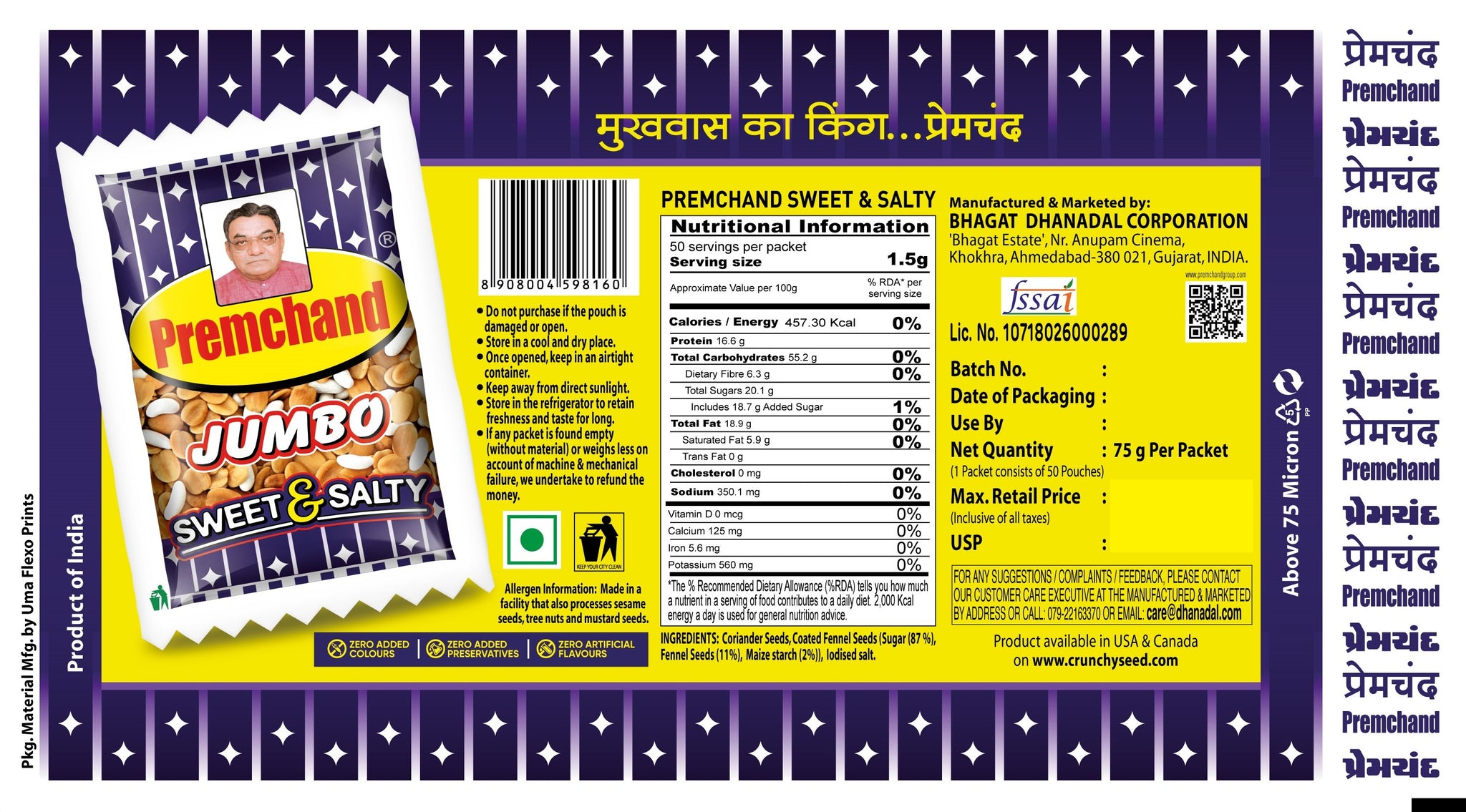 The Premchand Gold Sweet and Salty manufactured by Bhagat Dhanadal Corp.